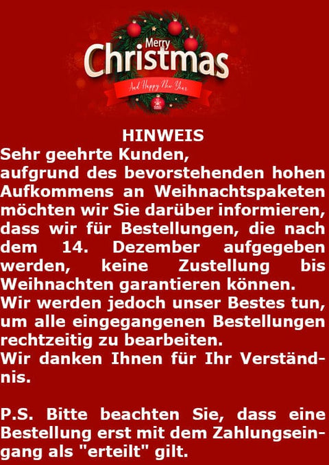 Der Versand nach Deutschland ist für alle Bestellungen immer Kostenlos.